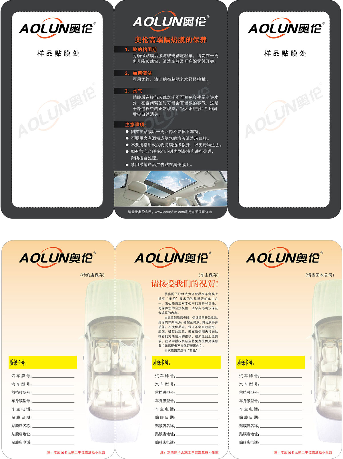 奥伦独创品牌,正品保证。奥伦膜全系质保终身不起泡、不起皱、不开裂。膜有以上质量问题,永久免费更换。